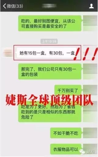 前幾天我們婕斯全球頂級團隊的一位紅寶級隊友,遇到了一件極其令人震驚又可笑的事情!這是她的一位下屬隊友的真實經歷,讓我們這些真正的婕斯人咋舌!居然還有15包一盒裝和60包一盒裝的沛泉菁華,這簡直是聞所未聞!美國婕斯公司的沛泉菁華都是全球統一包裝規格:每盒30包!現在居然出現了這種“怪胎”:15包一盒!60包一盒!這將會讓多少不是婕斯會員的人們上當受騙啊!前幾天聽說國內剛剛又查獲一個造假窩點,居然繳獲了600萬個沛泉菁華(白藜蘆醇)的高仿包裝盒,這個數字讓全球許許多多的婕斯人震驚!現在又在某大型購物網站出現了沛泉菁華的“怪胎”,這著實讓我們嚇掉下巴!各位,這會造成多麼大的傷害啊!試想這些希望可以通過婕斯產品擁有健康的人們,僅僅因為一時貪戀購物網站的“便宜”,造成了連他們自己都不知道會有什麼後果的傷害!
